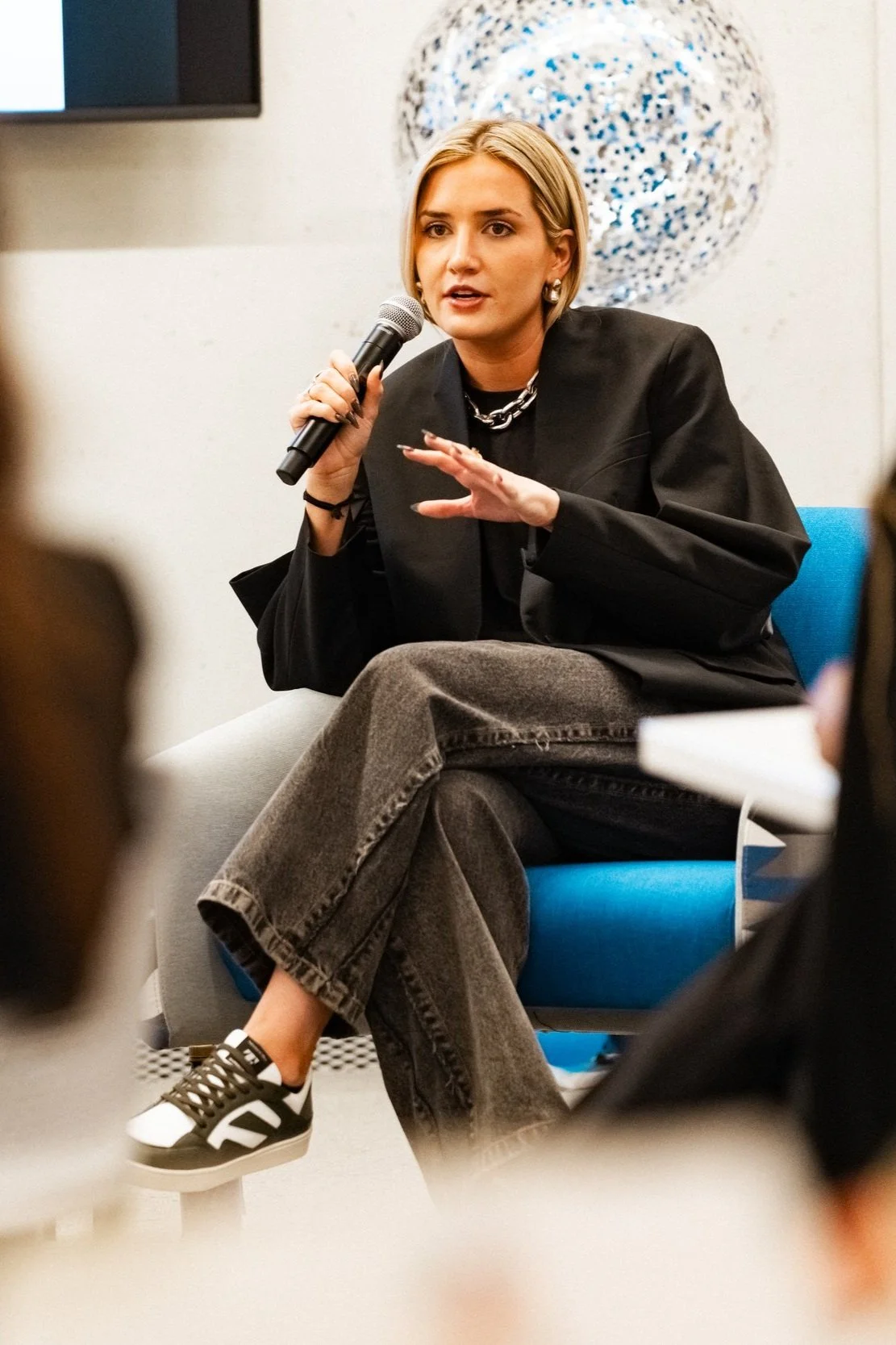 For our Lunch & Learn event component, Chloe Songer, Songer, founder of Super Circle and ThousandFell to spoke in person, while guests enjoyed Zweli's catered lunch. In 2019, Songet embarked on her mission to revolutionize the fashion world with a circular future. Wishing to create a pair of sneakers that were not only fashionable but also entirely recyclable, Songer co-founded Thousand Fell, a company that sells recyclable sneakers. Made from materials like yoga mats, food waste, vegan leather, recycled rubber, and even sugar cane, this zero-waste footwear can be seen on the shelves of prominent retailers including Bloomingdale’s, Madewell, and Zappos. Committed to a future of circularity, Songer’s company has raised $4.7 million in funding as it continues to redefine the future of fashion.