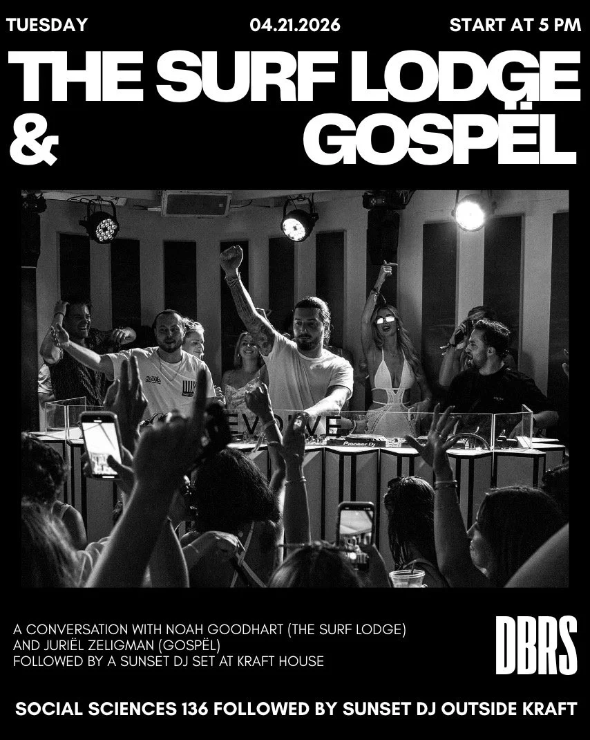 Hospitality Panel Tuesday, April 21, 2026 5:00 PM 7:30 PM Google Calendar ICS DBRS Hospitality Event with Juriel Zeligman (Gospel Founder) and Noah Goodhart (Surf Lodge Co-Owner)! This event will take place on Tuesday, April 21st 2026 at 5:00pm in Social Science 136 followed by an intimate sunset DJ set in Kraft house!Sign up here!! https://forms.gle/GBC7mCDU9gjiLrXT9